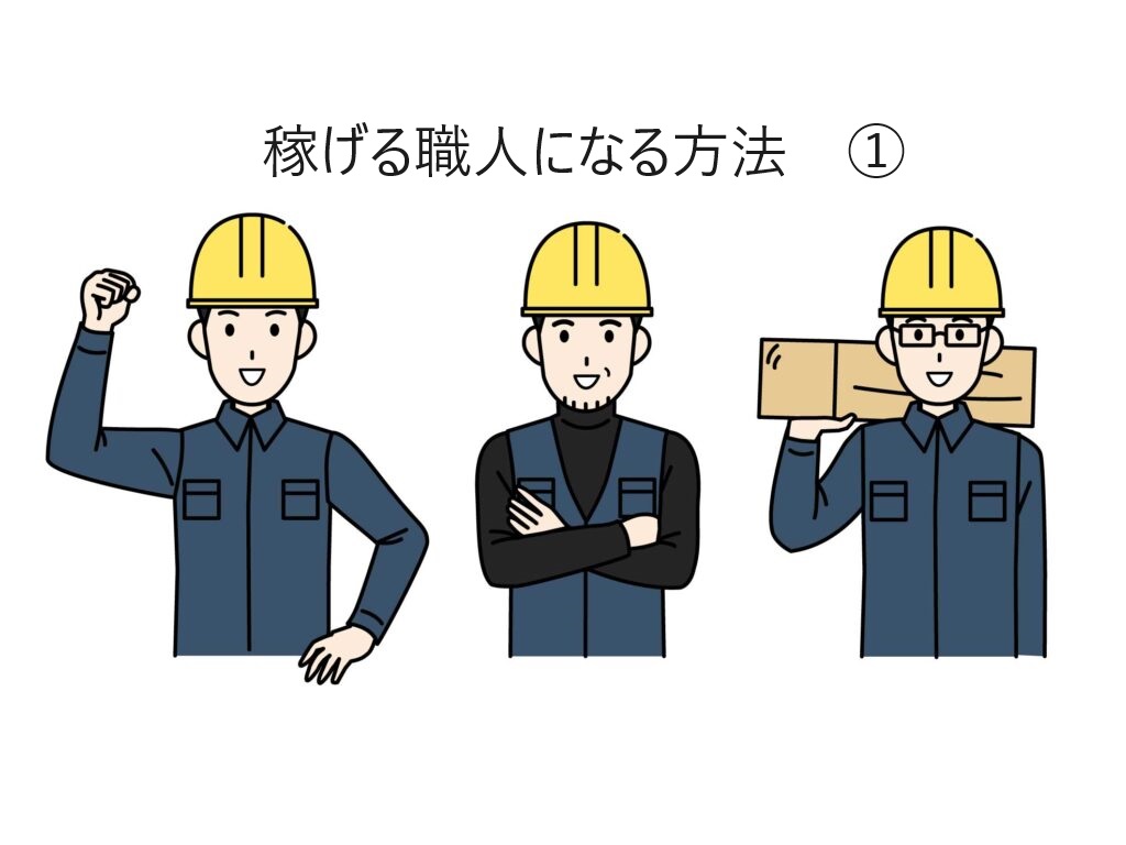 稼げる職人になる方法 ② 更新日:10月 13, 2023 公開日:10月 11, 2023 職人 稼げる職人になる方法 ①の続きです。 稼ぎを増やしたい職人はこの先をしっかり頭に叩き込んでください。 稼げない職人の特徴の1つとして次の様な考えをしている職人は稼げません。 「自分の仕事は現場で技術を振るう事だけだと考え […] 続きを読む